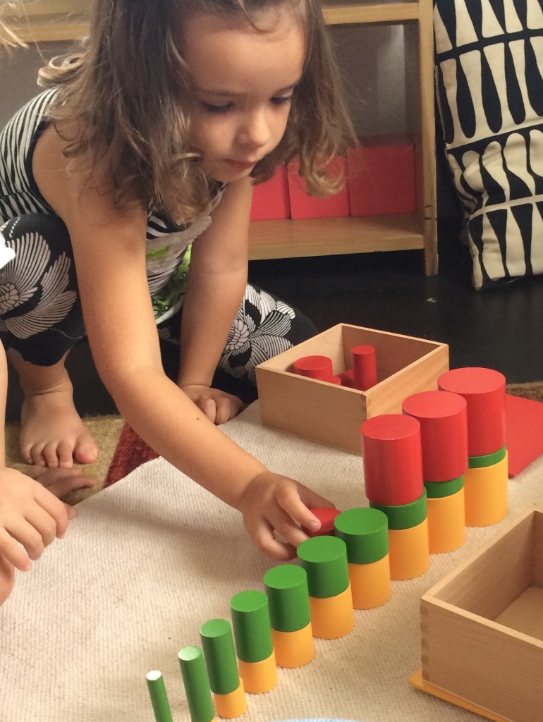 The blocks and cylinders are built at proportional increments. A child working with these materials will intrinsically become acquainted with gradation and proportion–all at the same time as they are having fun with our colorful, wooden pieces.