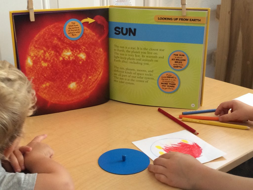 A popular topic among many of the older students last week was the planets, so true to Montessori our teachers followed that interest and we got out some of our spacey books and materials, and the students created some of their own. They are still busy with them this week!