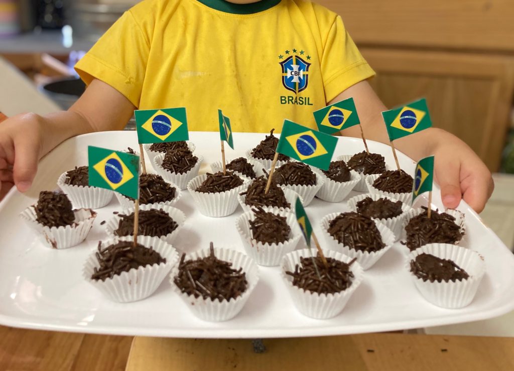 It started with cannoli and banana bread mixed on our art table. Then a Norwegian kransekake was constructed right on our lunch table. We’ve had crepes from France, brigadeiros from Brazil and some thatch dua from Vietnam. Such variety and all very tasty!